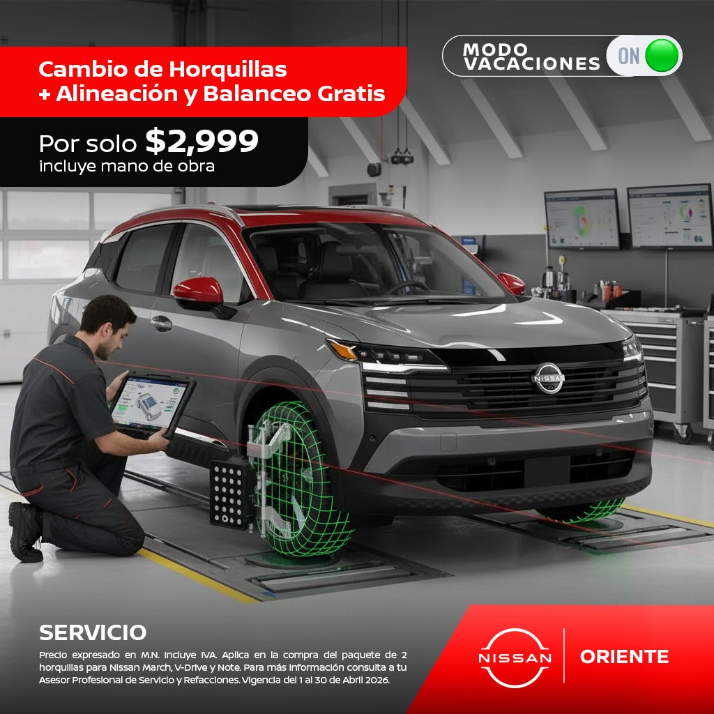 Precio expresado en M.N. Incluye IVA. Aplica en la compra del paquete de 2 horquillas para Nissan March, V-Drive y Note. Para más información consulta a tu Asesor Profesional de Servicio y Refacciones. Vigencia del 1 al 30 de Abril 2026.