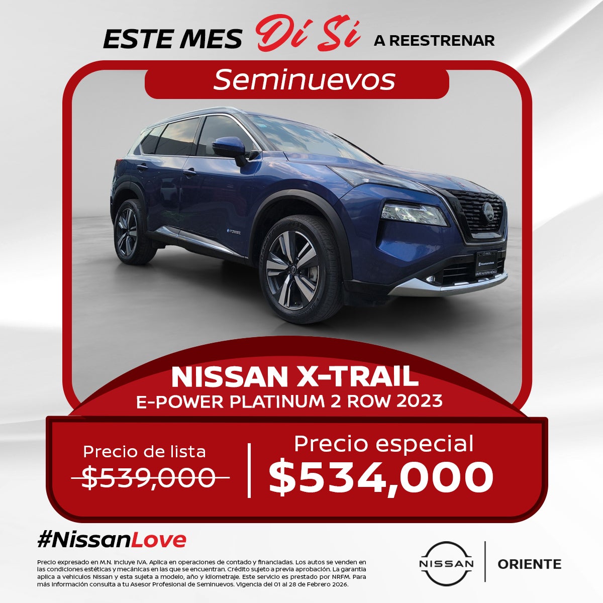 Precio expresado en M.N. Incluye IVA. Aplica en operaciones de contado y financiadas. Los autos se venden en las condiciones estéticas y mecánicas en las que se encuentran. Crédito sujeto a previa aprobación. La garantia aplica a vehiculos Nissan y esta sujeta a modelo, año y kilometraje. Este servicio es prestado por NRFM. Para más información consulta a tu Asesor Profesional de Seminuevos. Vigencia del 01 al 28 de Febrero 2026.